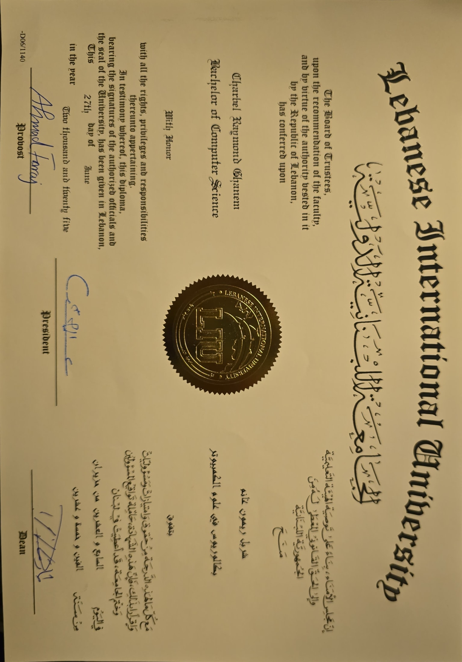 Lebanese International University (LIU) | 2022 - 2025